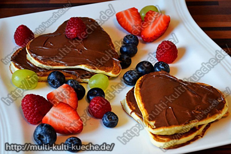 Zutaten für Herz Pancake Für den Teig:2 Eier250ml Milch200g Mehl50g Zucker1 Päck. Backpulver Zum bestreichen:Nuss Nougat Creme Für die Deko:Früchte nach Geschmack Zubereitung Aus dem Mehl, den Eiern, der Milch, dem Zucker und dem Backpulver einen Teig herstellen und 15 – 20 Minuten stehen lassen. Die Pfanne erhitzen und mit […]