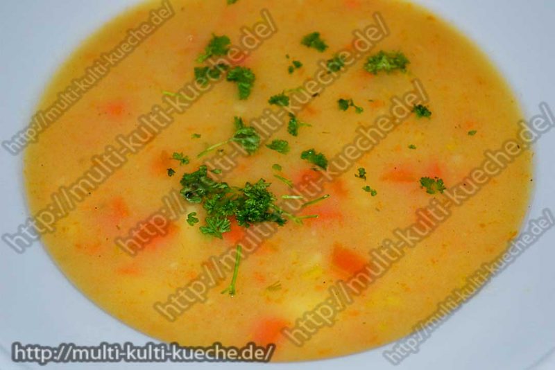 Zutaten für Kartoffelsuppe 800g Kartoffeln350g Karotten1/2 Stange Porree2 EL. Gemüsebrühe1,5 Liter Wasseretwas PetersilieSalz und Pfeffer Zubereitung Das Gemüse schälen und klein schneiden. Das Wasser in einen Topf geben und alle Zutaten außer der Petersilie hineingeben. Umrühren und zum kochen bringen. Wenn alles gar ist etwas abkühlen lassen und dann pürieren. […]