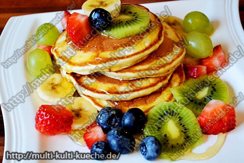 Zutaten für Pancakes Für den Teig2 Eier200g Mehl250ml Milch50g Zucker1 Päck. Backpulver Für die DekoFrüchte nach GeschmackHonig oder Ahornsirup Zubereitung Aus dem Mehl, den Eiern, der Milch, dem Zucker und dem Backpulver einen Teig herstellen und 15 – 20 Minuten stehen lassen. Die Pfanne auf Mittlere Hitze erhitzen, den Teig […]